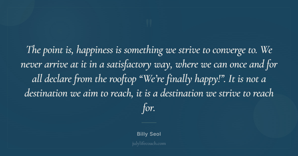 You might be wondering what the fuck this has to do with life coaching. The point is, happiness is something we strive to converge to. We never arrive at it in a satisfactory way, where we can once and for all declare from the rooftop “We’re finally happy!”. It is not a destination we aim to reach, it is a destination we strive to reach for.